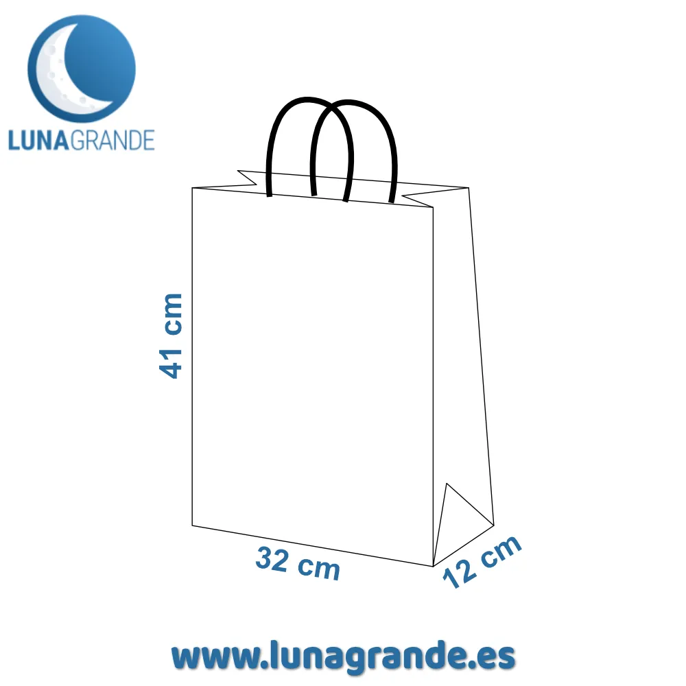 Bolsa de papel celulosa de color blanco realizada en papel de alta calidad en 90 gr con el asa retorcida en color blanco.