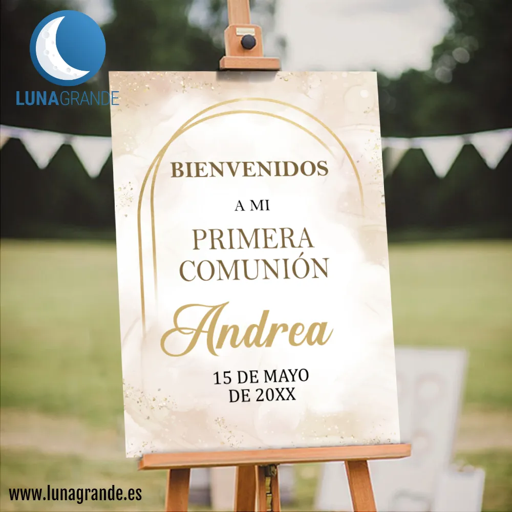 - Cartel de comunión personalizado con nombre y fecha.