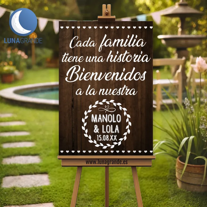 Cada familia tiene su historia bienvenidos a nuestra madera 50 x 70Cartel Boda – Cada familia tienes una historia