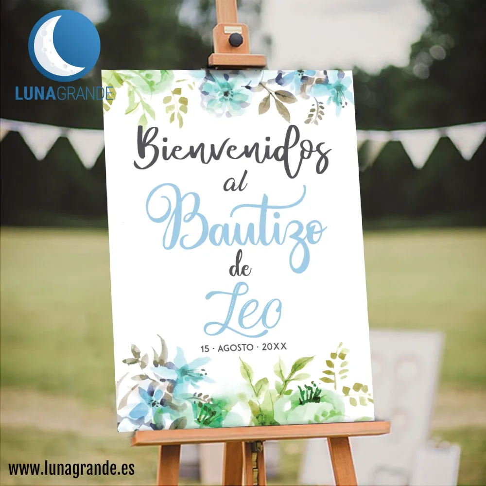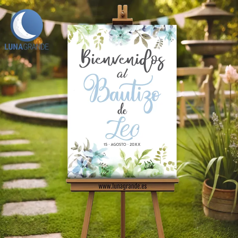 Haz que el bautizo de tu peque sea aún más especial con este precioso cartel de bienvenida personalizado. Un póster de bautizo con diseño de lo más elegante con detallas florales estilo acuarela en tonos suaves, perfecto para decorar la entrada al evento o la mesa de bienvenida. Incluye el nombre del bebé y la fecha, todo con un acabado profesional y una presentación impecable.