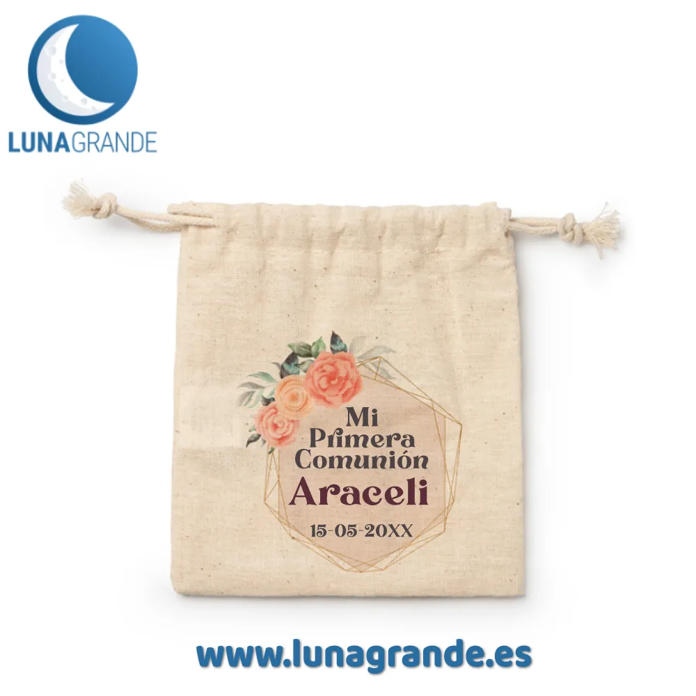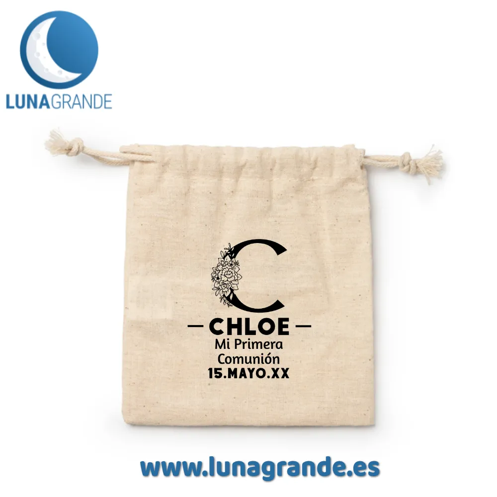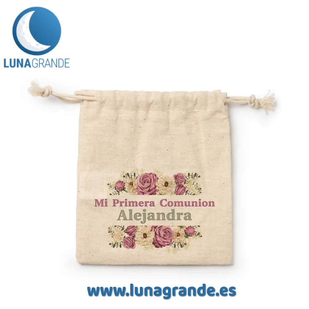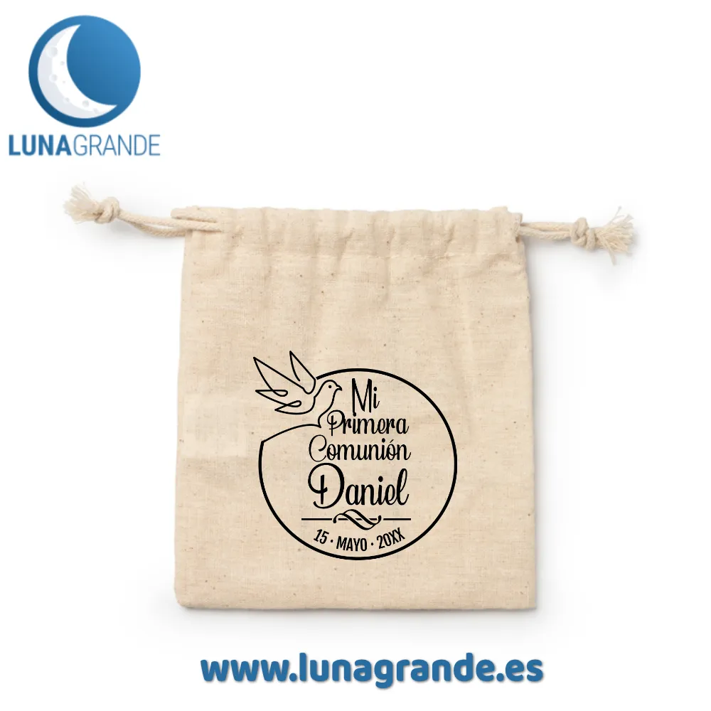 La bolsa de algodón es el soporte ideal para personalizar tu detalle de Comunión. Puedes elegir: