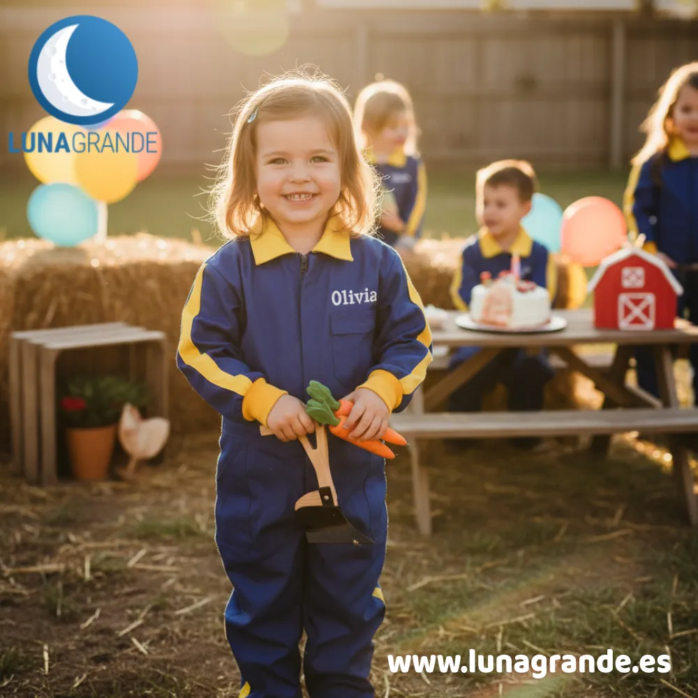 Ideal para usar como disfraz o atrezzo en una fiesta infantil de temática agrícola o para salir al campo y ayudar en la finca a los mayores sin mancharse la ropa.