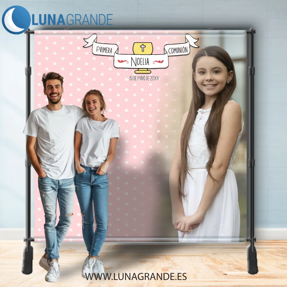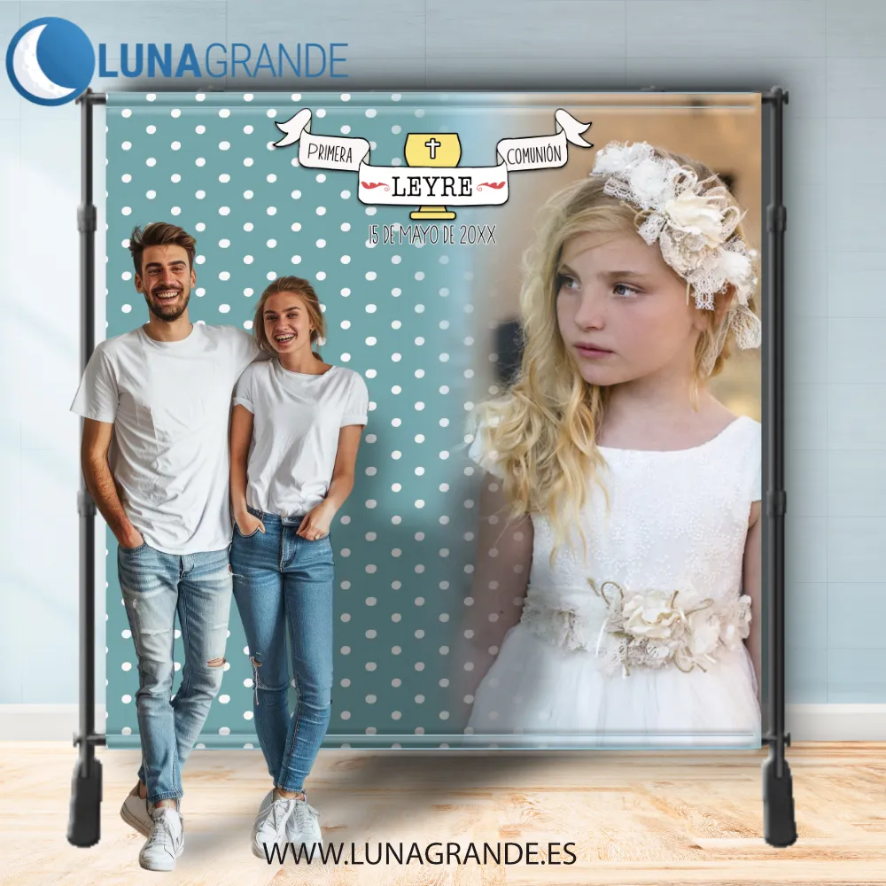 Photocall de Primera Comunión Con fotoPhotocall Comunión Puntitos Foto