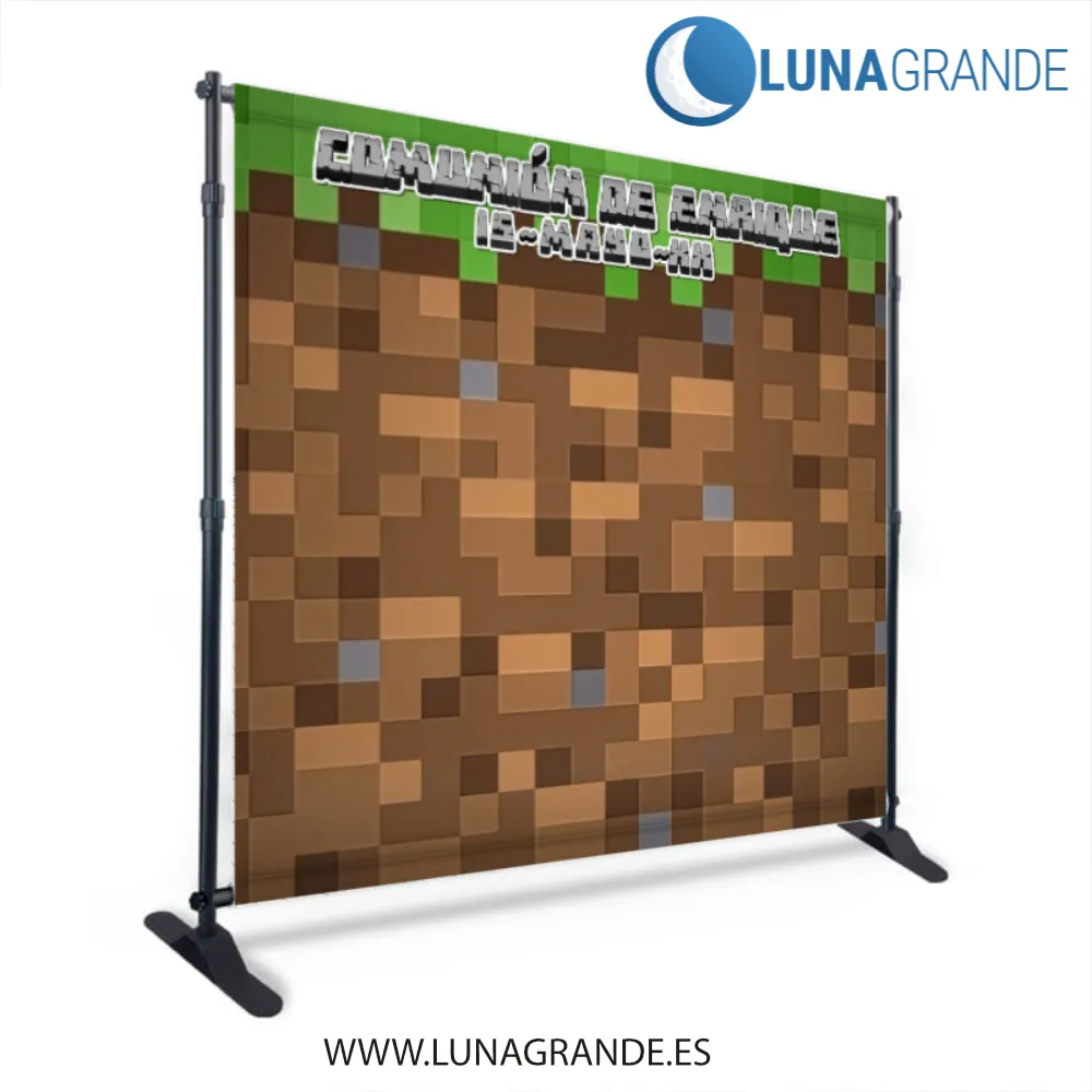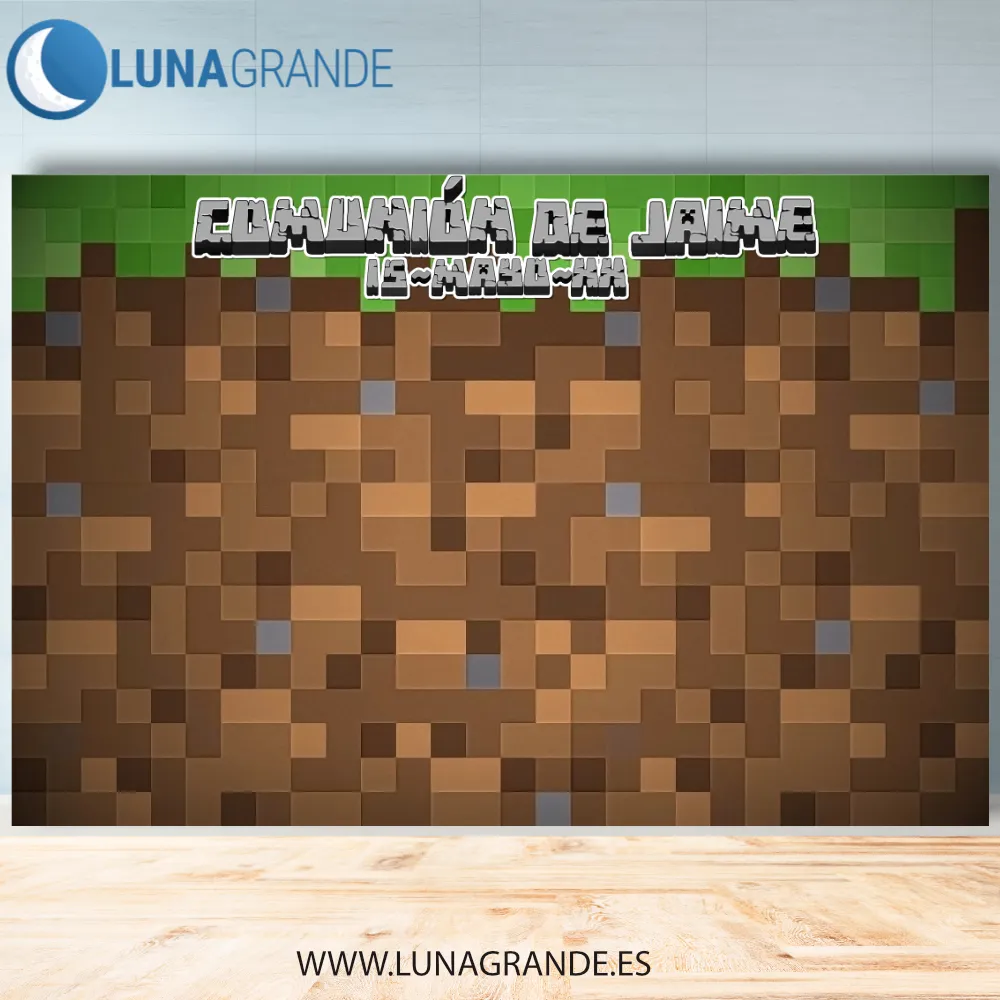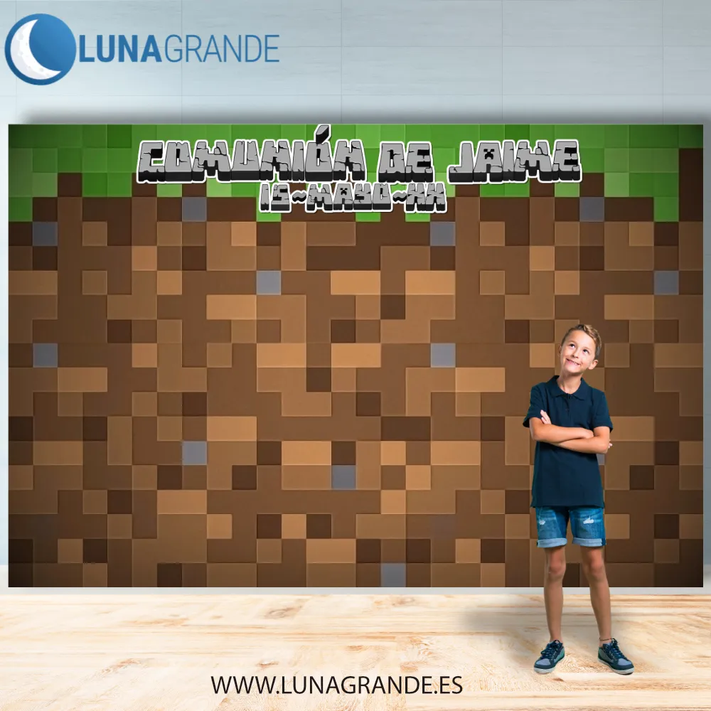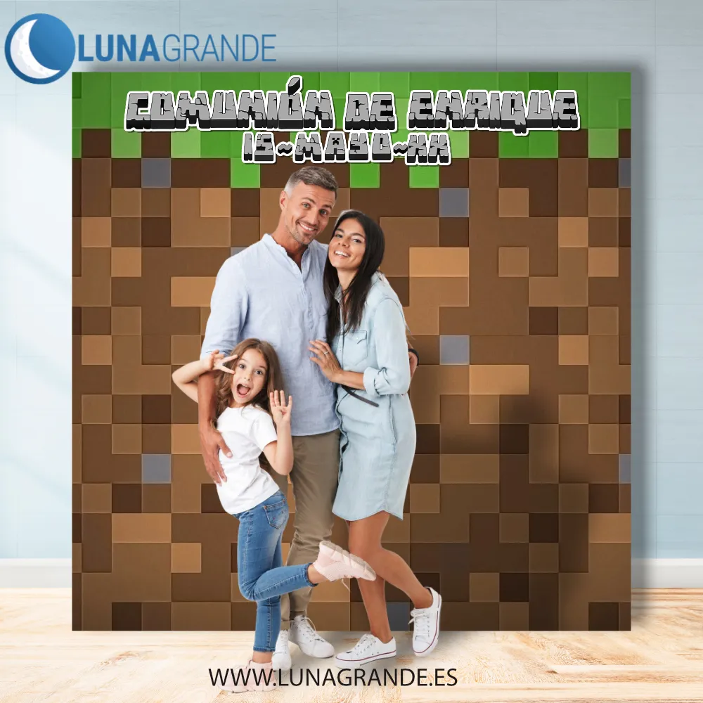 En Luna Grande, nos encanta estar a la última en lo que más les gusta a los peques. Sabemos que sus gustos evolucionan y que las mamás buscan sorprender con detalles únicos y actuales. Por eso hemos diseñado este photocall fan art inspirado en ese universo pixelado que tantos niños adoran. Porque una comunión puede (y debe) tener su toque friki con estilo.