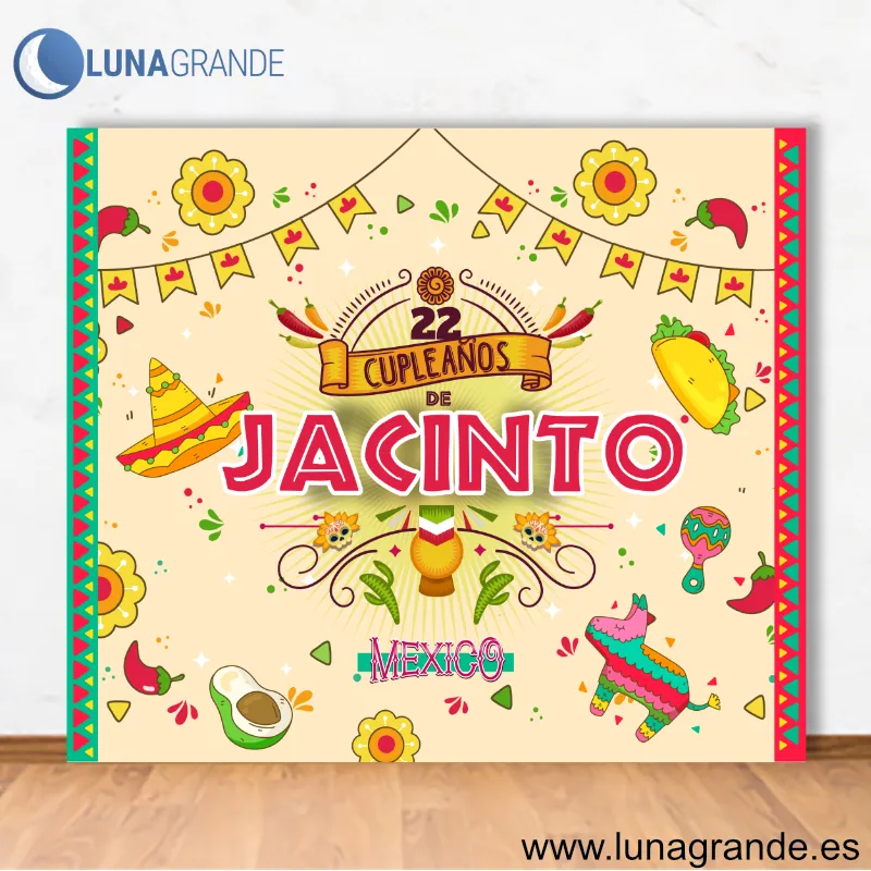 ¡Dale sabor, color y alegría a tu fiesta con el Photocall Cumpleaños México! Diseñado para quien quiera celebrar a lo grande, este fondo temático mexicano está lleno de detalles vibrantes que convertirán cualquier cumpleaños en una auténtica fiesta ¡Ándale! Ideal para hacer fotos inolvidables y darle ese toque auténtico que marca la diferencia.