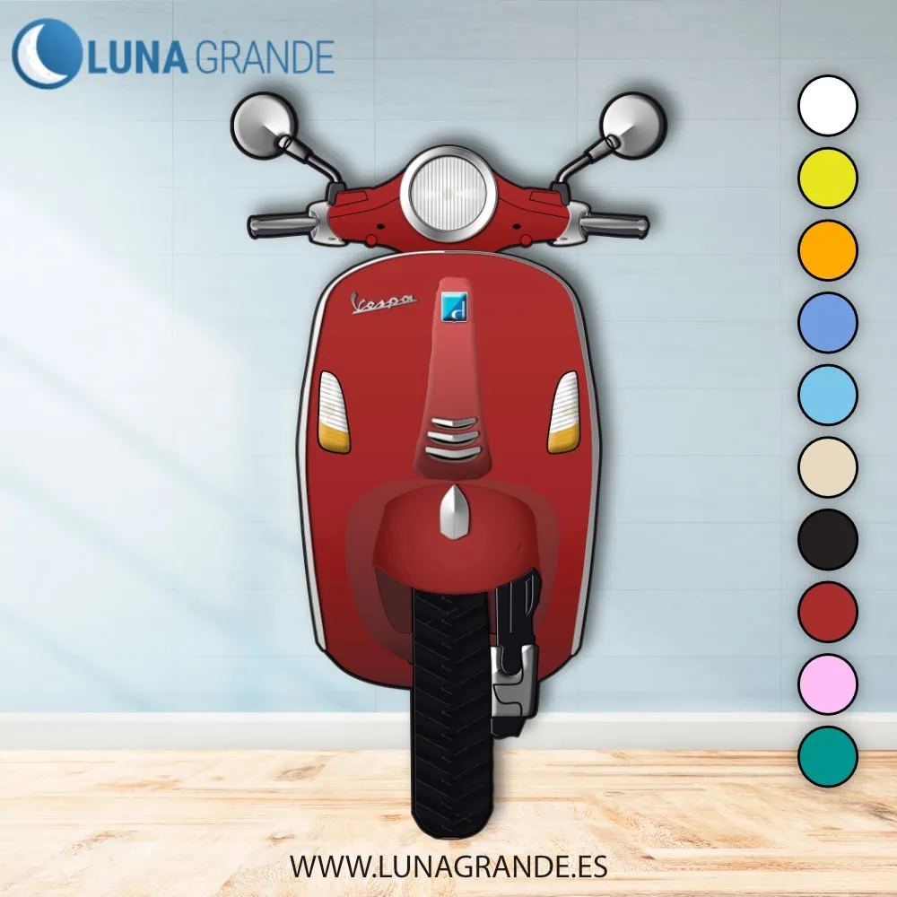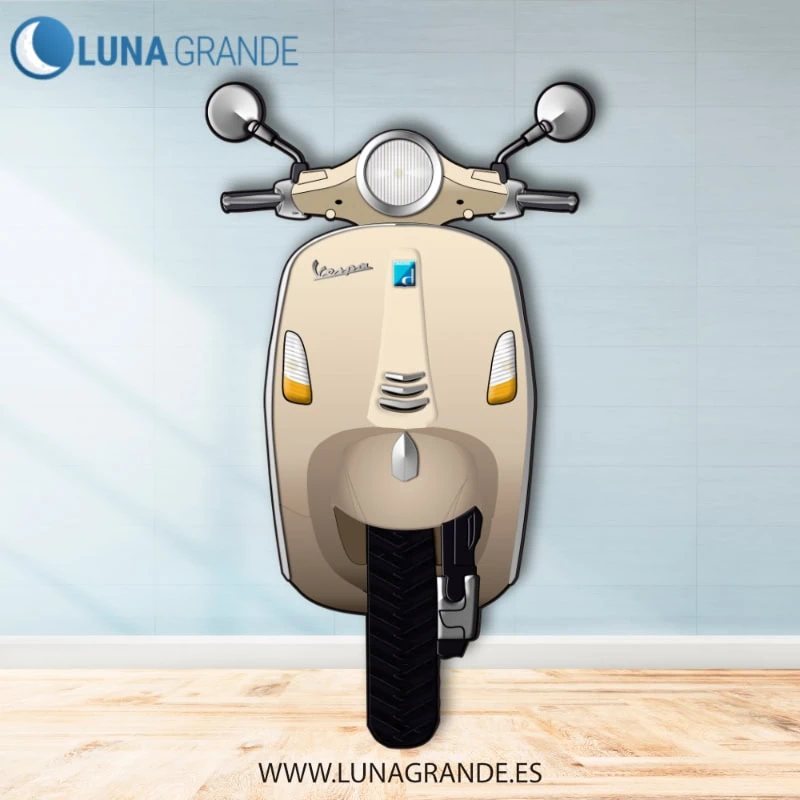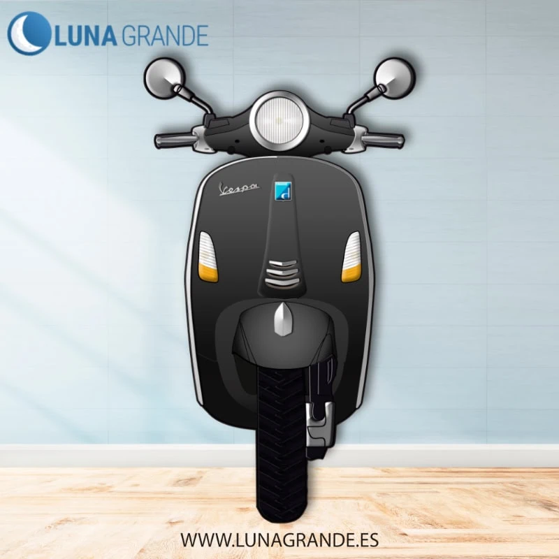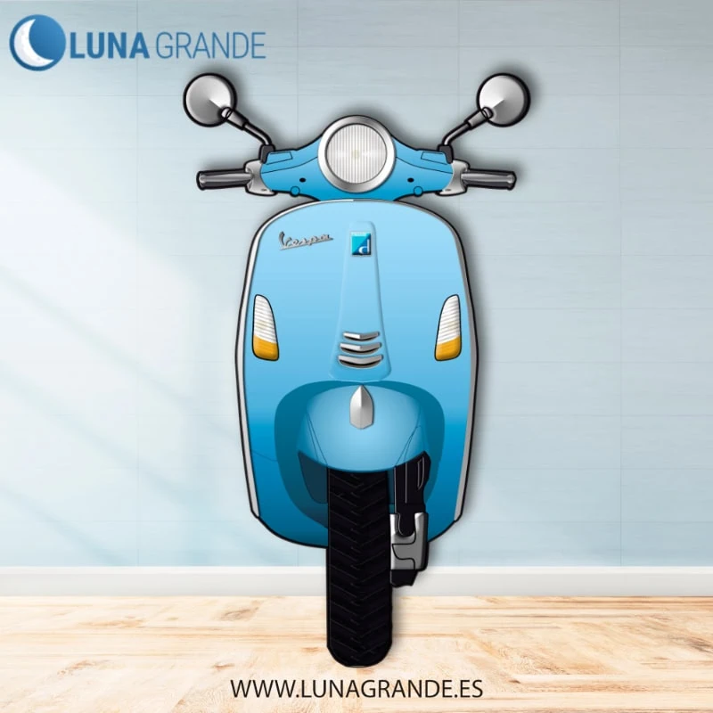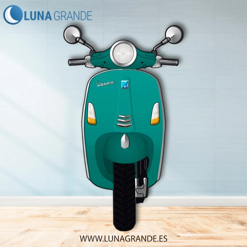 Este producto es un photocall con forma de moto scooter inspirado en el diseño clásico italiano tipo Vespa. Se utiliza en eventos como bodas, cumpleaños o celebraciones temáticas para crear fotos divertidas y memorables. Está disponible en diferentes materiales y acabados, con opción de personalización.