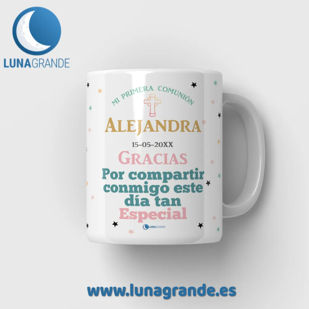 Un recuerdo que no se guarda en un cajón: se usa cada día. ☕✨ Esta taza personalizada de Primera Comunión es perfecta para regalar a abuelos, padrinos, madrinas o invitados especiales. Personalízala con foto, nombre y fecha y crea un detalle emotivo, práctico y duradero.