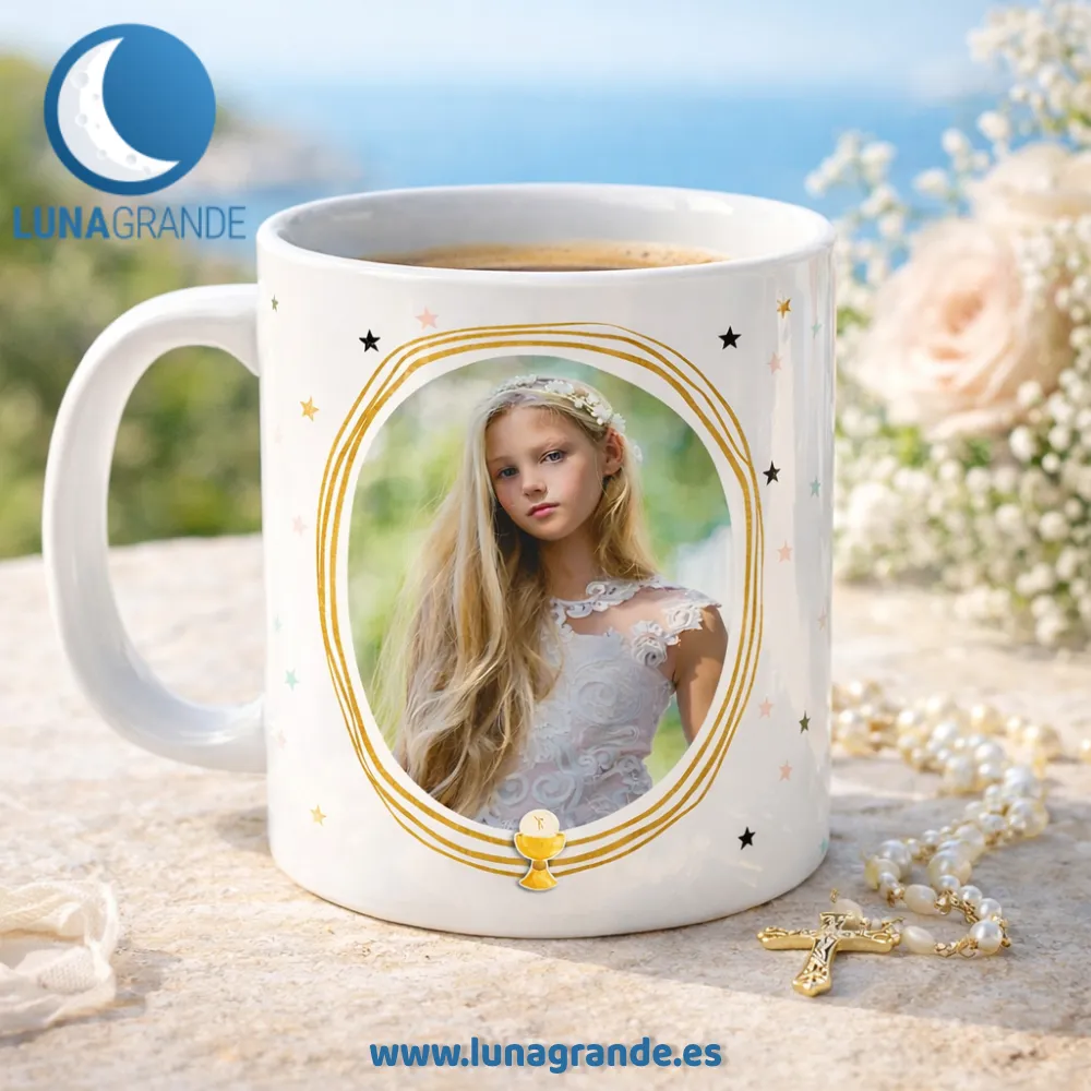 Un recuerdo que se usa cada día. Personaliza tu taza de Primera Comunión y convierte una foto bonita en un detalle que acompaña durante años.